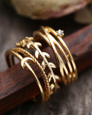 Boho Ring Set 3 Χρυσά Δαχτυλίδια Moon Crystal Branch
