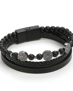Boho Men Layered Μαύρο Βραχιόλι Tree Of Life