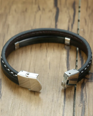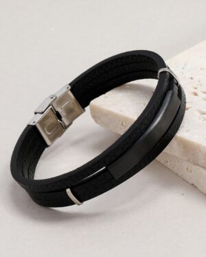 Boho Men Μαύρο Layered Βραχιόλι Με Ατσάλινο Στοιχείο