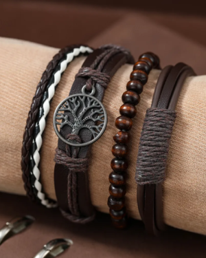Boho Men Set 4 Καφέ Tree Of Life Βραχιόλια