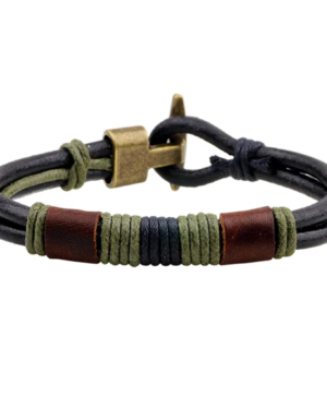Boho Men Leather Πράσινο Βραχιόλι Με Κορδόνι