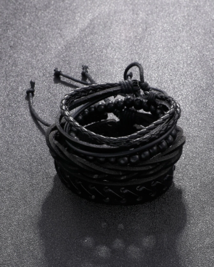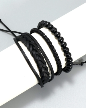 Boho Men Set 4 Μαύρα Πλεκτά Pu Leather Βραχιόλια