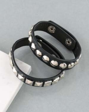 Boho Men Set Μαύρα Βραχιόλια Με Μεταλλικά Τρουκς