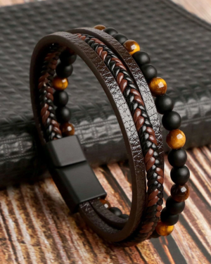 Boho Men Layered Βραχιόλι Με Ημιπολύτιμους Λίθους