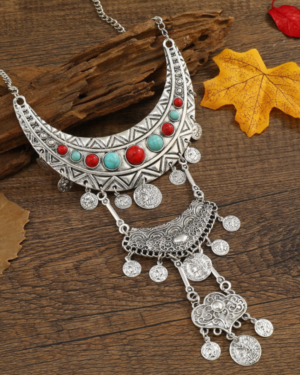 Ethnic Ασημί Κολιέ Blue Red Choker Beads & Coins